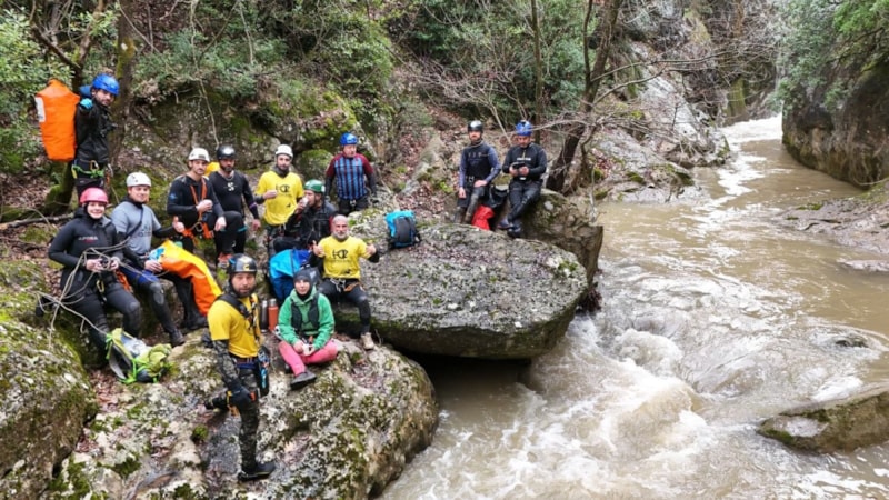 Bursa'nın diğer ilçelerinden gelip Orhangazi’de buluşan dağcı ekibi, Sölöz Kanyonu’nda doğa yürüyüşü yaptı.