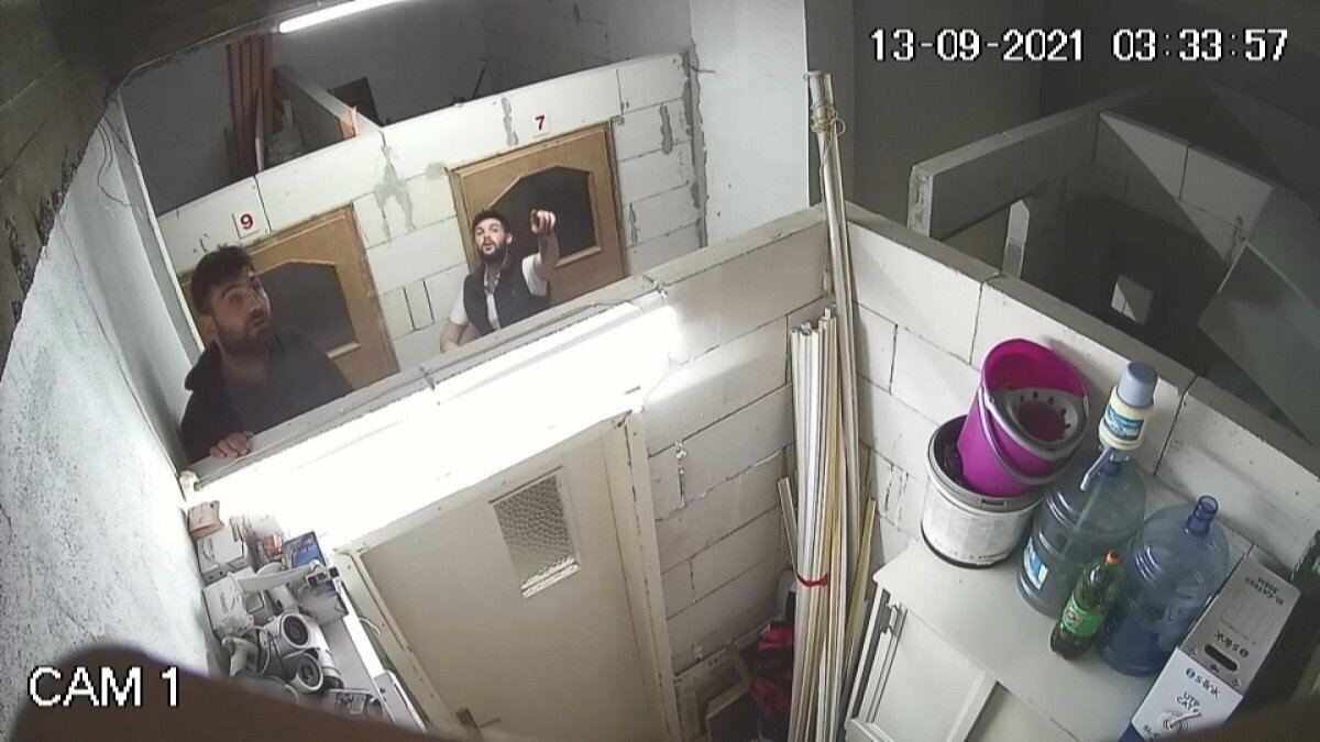 13 Eylül Pazartesi günü saat 03.00 sıralarında siteye gelen kimliği belirsiz iki kişi, bir süre binada dolaştıktan sonra bodrum kattaki depoya indi.