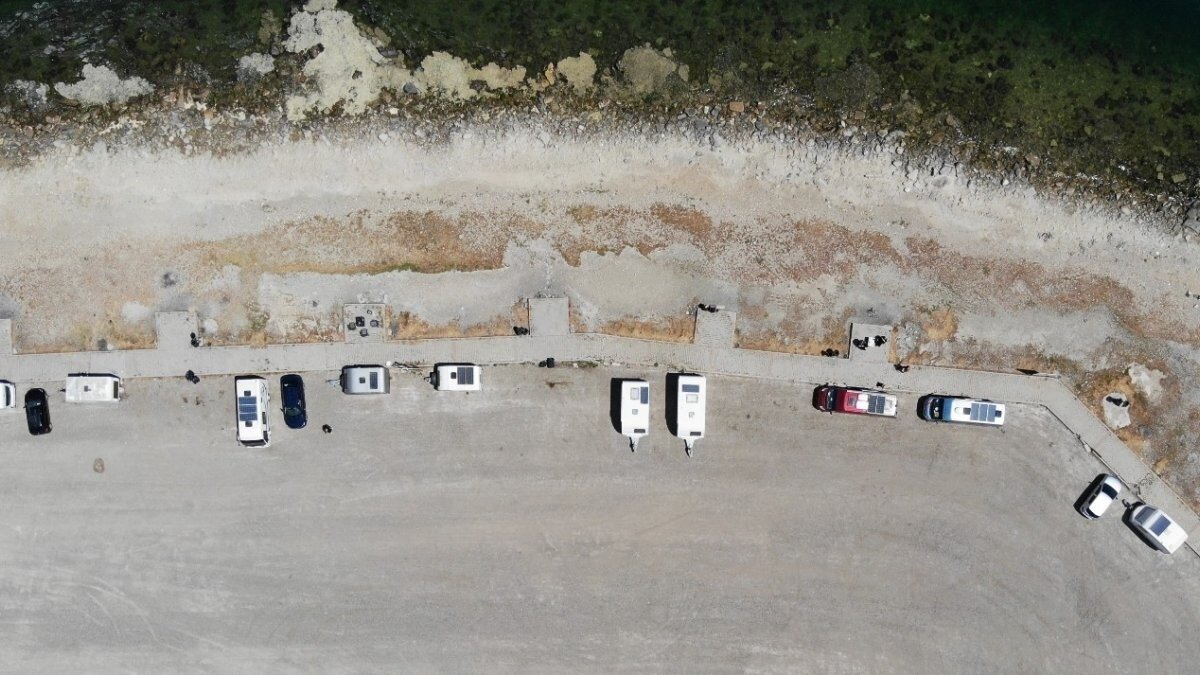 "Biz burada denize sıfır tatilimizi yapıyoruz. Burada çok sayıda karavancı arkadaş var. Evlerimizde kalmıyor, burada denize sıfır bedava tatil yapmanın keyfini çıkartıyoruz. Burada devamlı kalanlar, hafta sonu gelen arkadaşlar da var. Bilhassa hafta sonu burası dolup taşıyor.