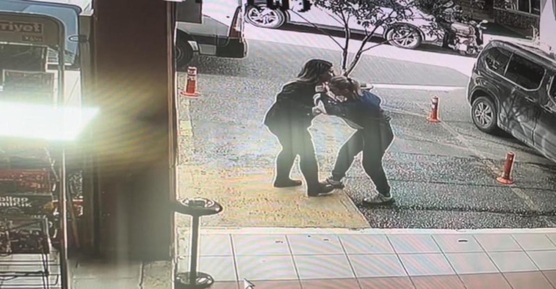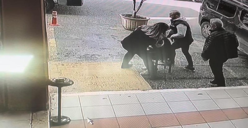 O esnada kapalı bir mekanda olan bir kadın ise kendisini dışarı atınca fenalık geçirdi.
