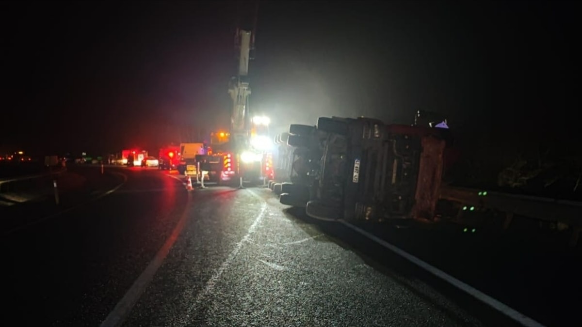 Bursa'nın İnegöl ilçesinde seyir halinde olan Kıyasettin K. (56) idaresindeki tanker, sürücüsünün kontrolünden çıkarak karşı şeride geçti ve bariyerlere çarpıp devrildi.