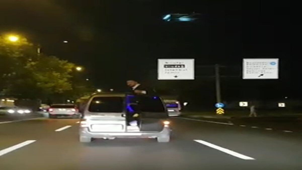 Bursa'nın en işlek caddelerinden biri olan Ankara Yolu Caddesi'nde seyir halinde olan düğün konvoyundaki vatandaşlar, araçların kapı ve camlarından dışarıya çıktı.