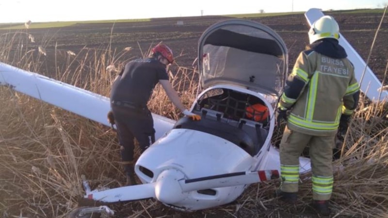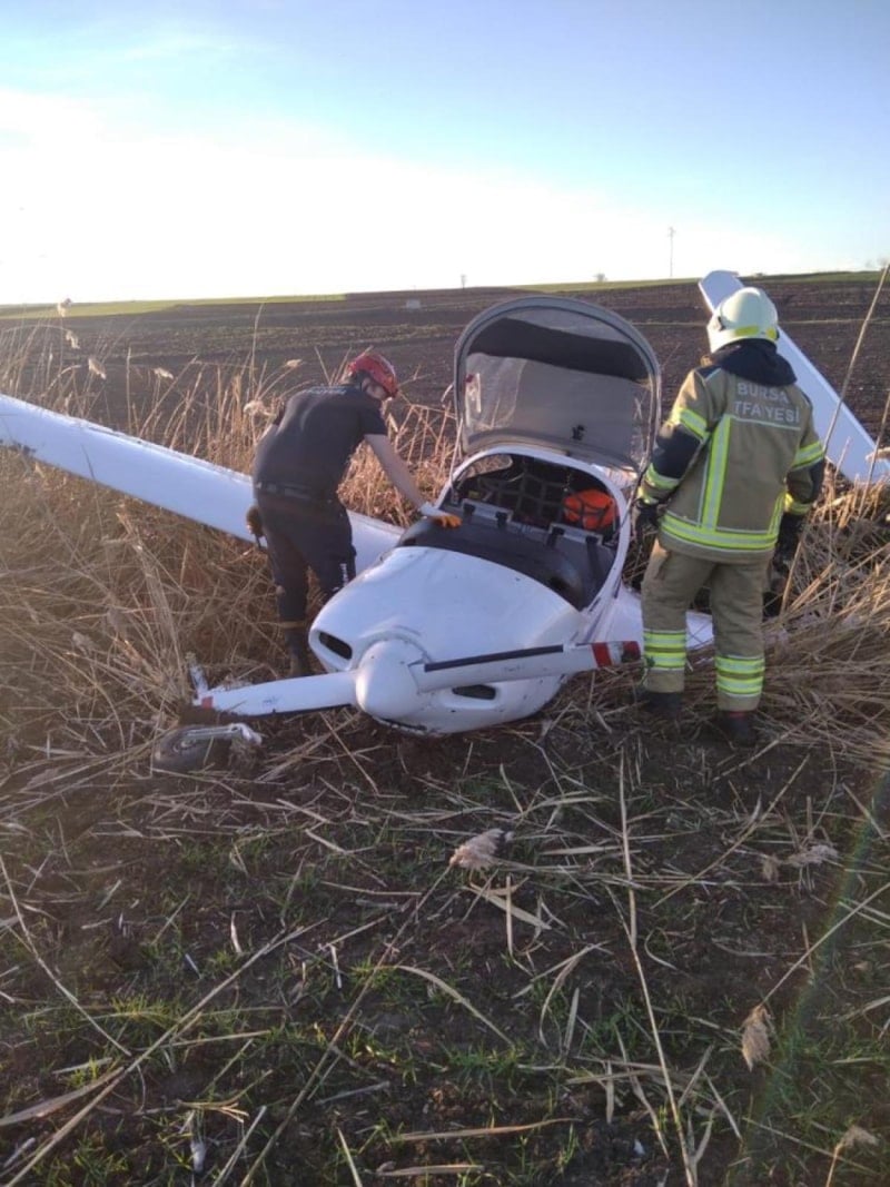 Saat 16.30 sıralarında Bursa'nın Yenişehir ilçesine bağlı Çiçeközü köyü Sırt mevkiinde, bir eğitim uçağı tarlaya zorunlu iniş yaptı.