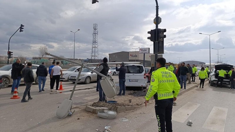 Aydınlatma direği ile kırmızı ışıkta duran otomobile çarpan hafif ticari aracın ehliyetsiz sürücüsü 25 yaşındaki Yasin Ü., yaralandı.