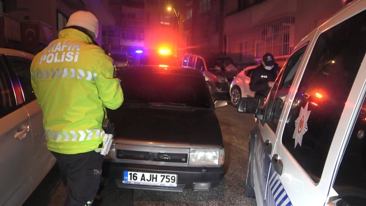 Bursa'nın Osmangazi ilçesinde sokağa çıkma kısıtlaması nedeniyle uygulama yapan polis ekipleri, seyir halinde olan plakasız otomobile 'dur' ihtarında bulundu.