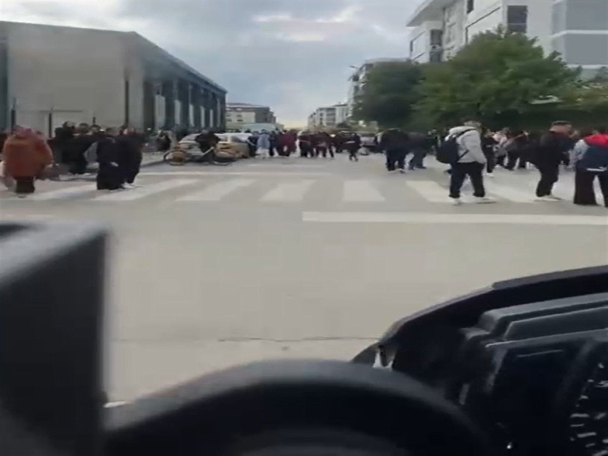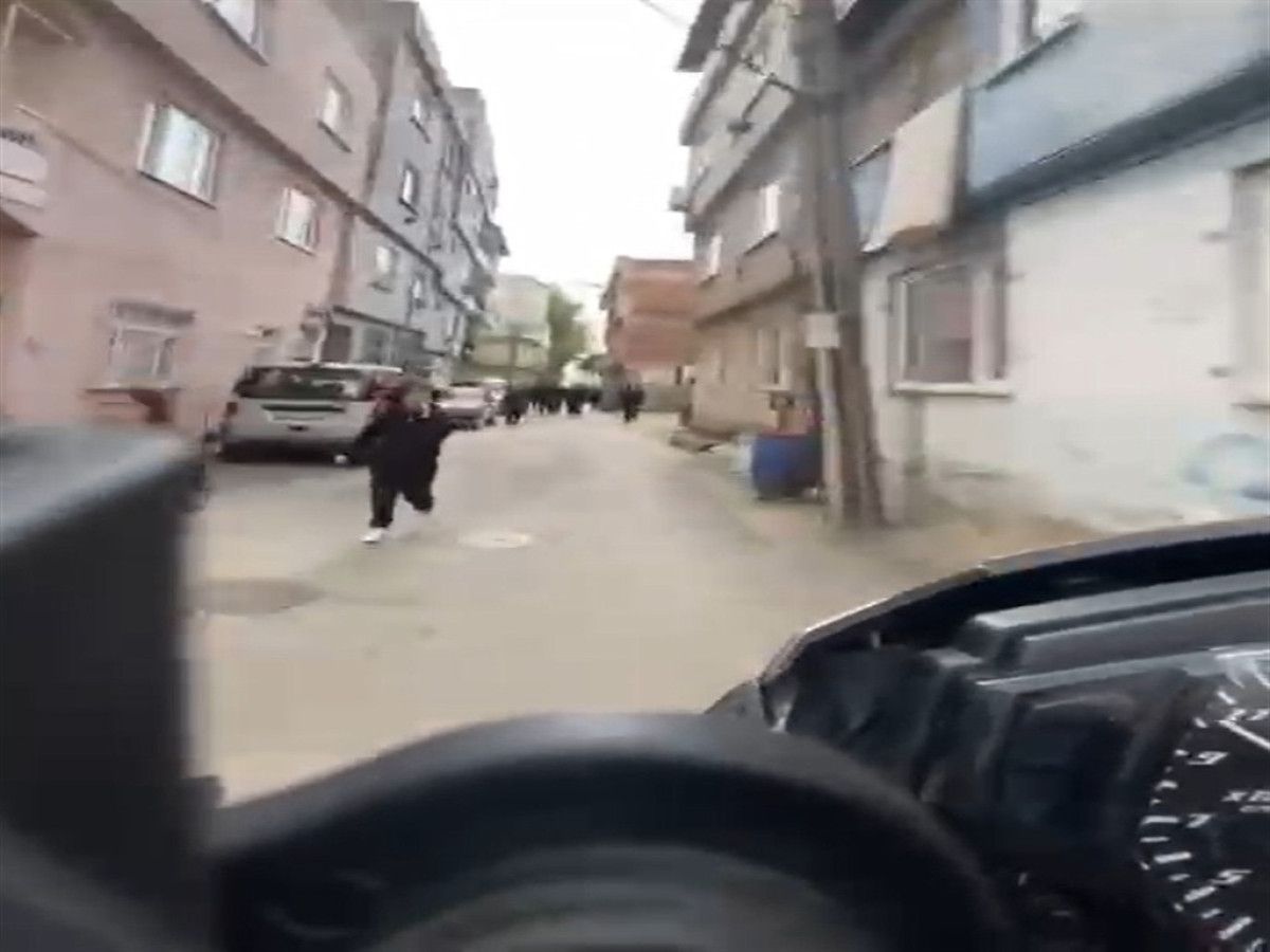 Bursa'nın Osmangazi ilçesi Soğanlı Mahallesi'nde, öğrencilerin okuldan çıkış saatinde sokak aralarına giren bir motosiklet sürücüsü, ön tekerleğini kaldırarak öğrencilerin arasından hızla geçti.