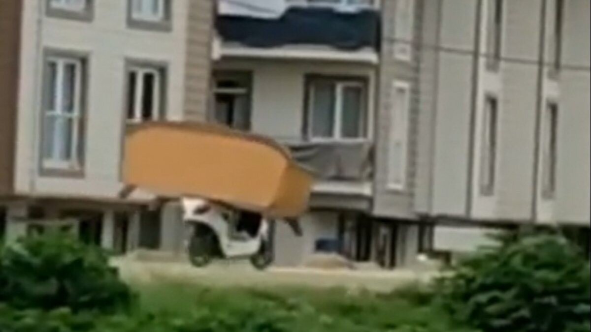 Bursa'nın İnegöl ilçesinde kimliği bilinmeyen bir sürücü, elektrikli bisikletinin üzerine koyduğu koltuğu kilometrelerce taşıdı.