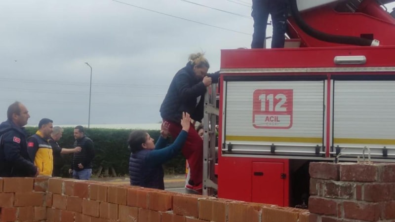 4 kişilik aile, son anda alevleri fark ederek evden çıkarken, bir kadın dumandan etkilendi. Üst katta oturan başka bir kadın da duman nedeniyle merdivenlerden inemeyince terasa çıktı. Dumandan etkilenen kadını da itfaiye ekipleri merdivenli araçla kurtardı.