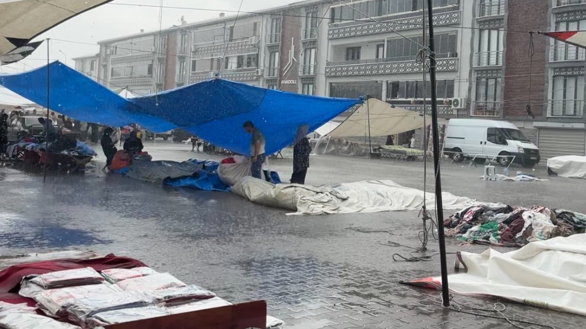 Eşref Dinçer Mahallesi'nde bulunan Perşembe pazar alanı ise tamamen suyla doldu. Bazı pazarcıların malları ıslanırken, bazı pazarcılar da tezgahlarını toplayarak mallarını araçlarına yükledi.