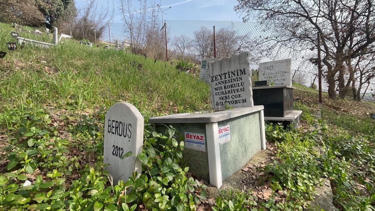 Hayvanseverlerin, evcil hayvanları için yaptırdıkları mezarların taşlarına koydukları fotoğraflar ile ‘Çiçeğim, karakuzum, kurabiyem asil oğlum seni hiç unutmayacağız’, ‘Oğlumuz Çapkın seni çok seviyoruz meleğimiz’, ‘Zeytinim annesinin mis kokulu kurabiyesi seni çok özlüyorum’ gibi yazılar yer alıyor.
