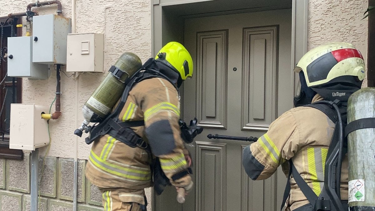 Ev sahibinin olay sırasında evde bulunmaması nedeniyle, itfaiye ekipleri kapıyı balyozla kırarak daireye girdi.