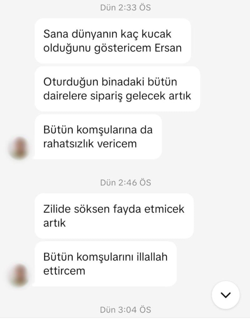- Ersan Yalçuva'nın evine, 20 gün içinde 400 sahte yemek siparişi ve asılsız ihbar geldi.