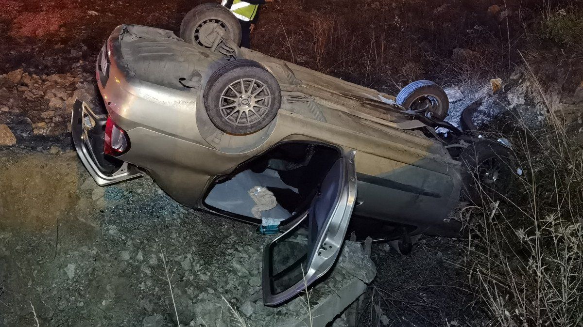 Çarpışmanın etkisiyle devrilen otomobil kanala düşerek, ters durdu.