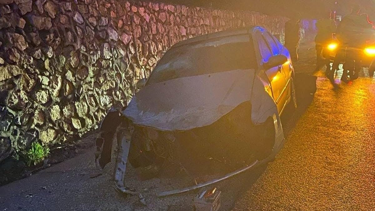 Yağış nedeniyle kayganlaşan yolda sürüklenen otomobil Mezit 7 mevkiinde istinat duvarına çarptı.