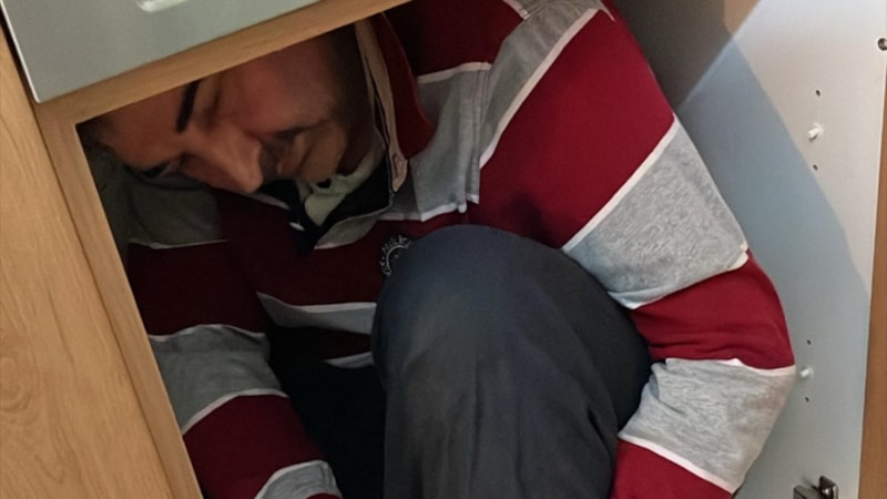 Evde yapılan aramalarda hükümlü A.K, mutfak dolabında saklanırken yakalandı.