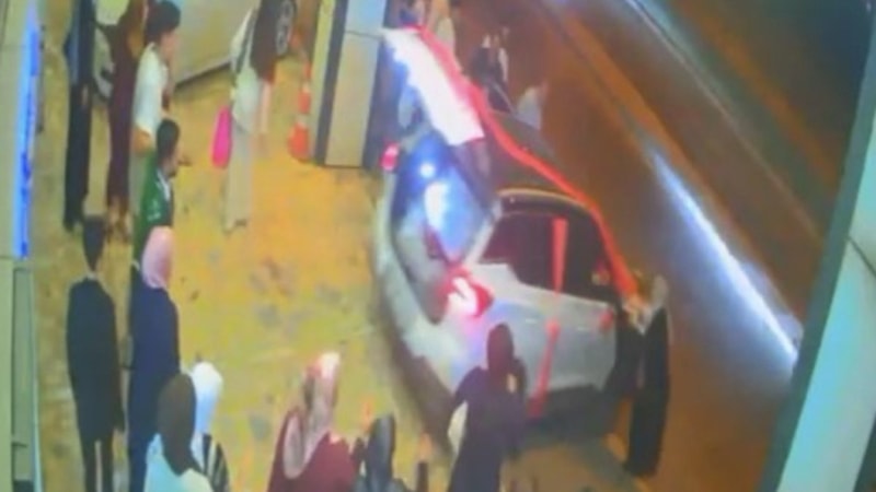 Arabanın hareket ettiği anda önünden kaçan kişi ise saniyeler ile aracın altında kalmaktan kurtuldu.