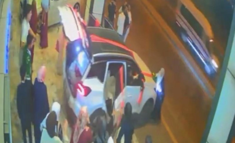 Ana yol üzerindeki düğün salonundan gelinle birlikte ayrılan cip, anayolun ortasında bulunan metro duvarına kadar gitti.