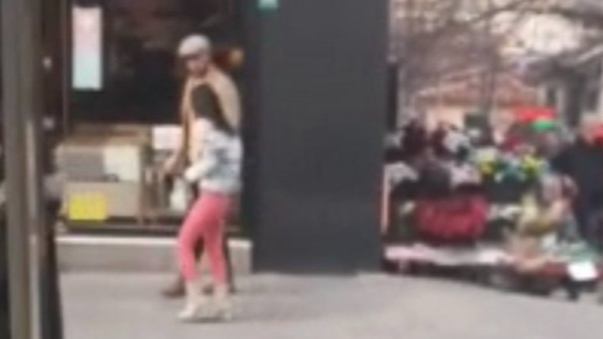 Bir dükkanın önünde duran erkek şahıs, henüz bilinmeyen bir sebepten dolayı tartıştığı genç kıza tekme attı.