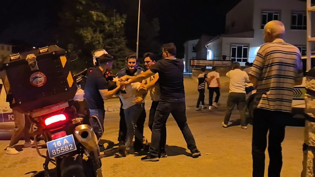 Ekipler yoğun çaba sonucu şahısları ayırdı. Polise mukavemet gösteren 2 şahıs gözaltına alındı. Gözaltına alınan şahıslar İnegöl Devlet Hastanesine sağlık raporu alınmak üzere götürüldü.
