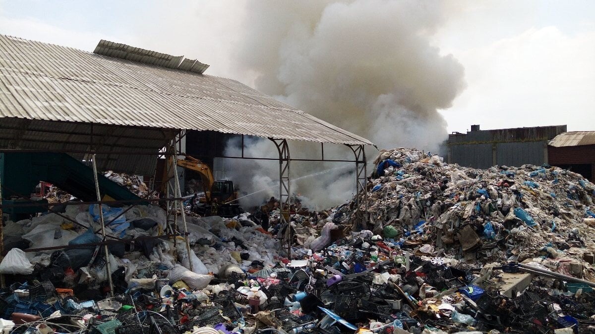 Bursa'nın İnegöl ilçesin Organize Sanayi bölgesinde faaliyet gösteren bir geri dönüşüm tesisinin atık toplama sahasında yangın çıktı.