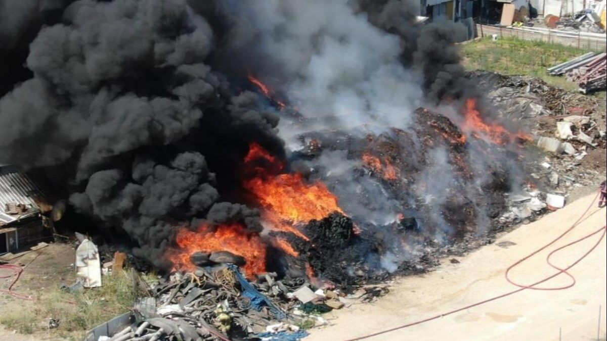 Bursa'nın Osmangazi ilçesinde buluna geri dönüşüm tesisinde henüz belirlenemeyen bir nedenle yangın çıktı.