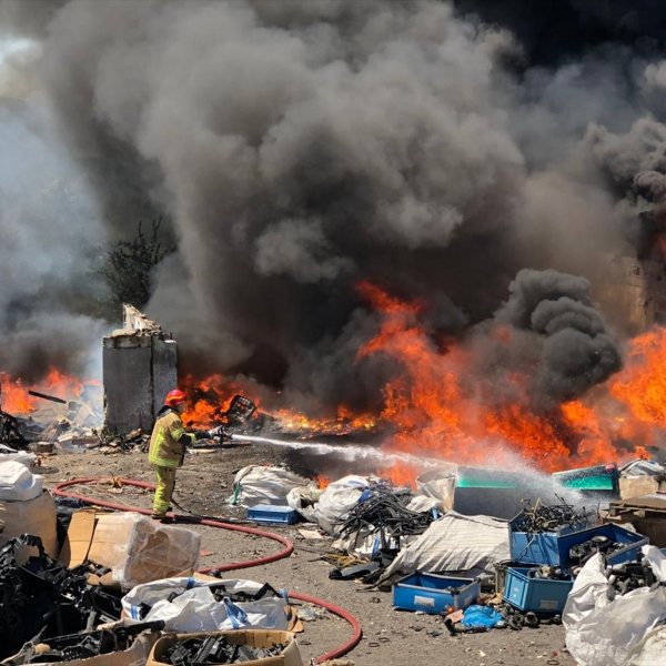 Kenan Karakuş'a ait geri dönüşüm tesisinde, açık alanda kaynak yapıldığı sırada, çıkan kıvılcımların plastik malzemeleri tutuşturmasıyla yangın çıktı.