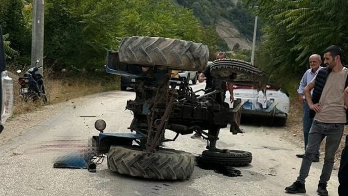 Turan, kontrolden çıkıp devrilen traktörden atlarken, annesi ise aracın altında kaldı.