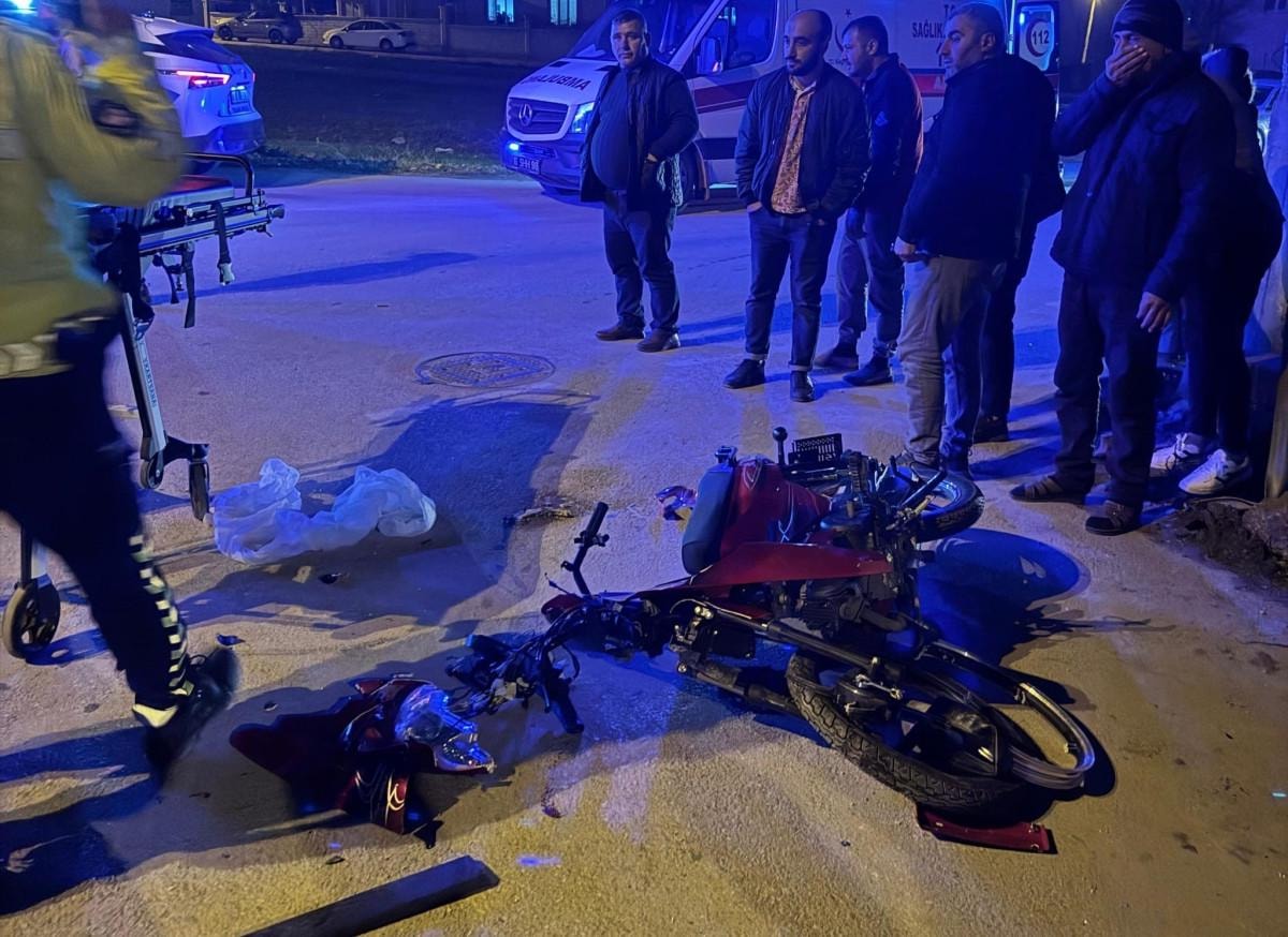Bursa'nın İnegöl ilçesi Akhisar Mahallesi'nde seyir halinde olan Yakup Eymen H. (16) yönetimindeki motosiklet, karşı yönden gelip sokağa dönüş yapmakta olan Zülküf Ö. (45) idaresindeki hafif ticari araç ile çarpıştı.