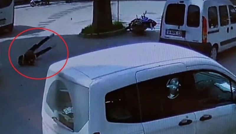 Kaza anı çevredeki bir iş yerinin güvenlik kamerasına saniye saniye yansıdı.