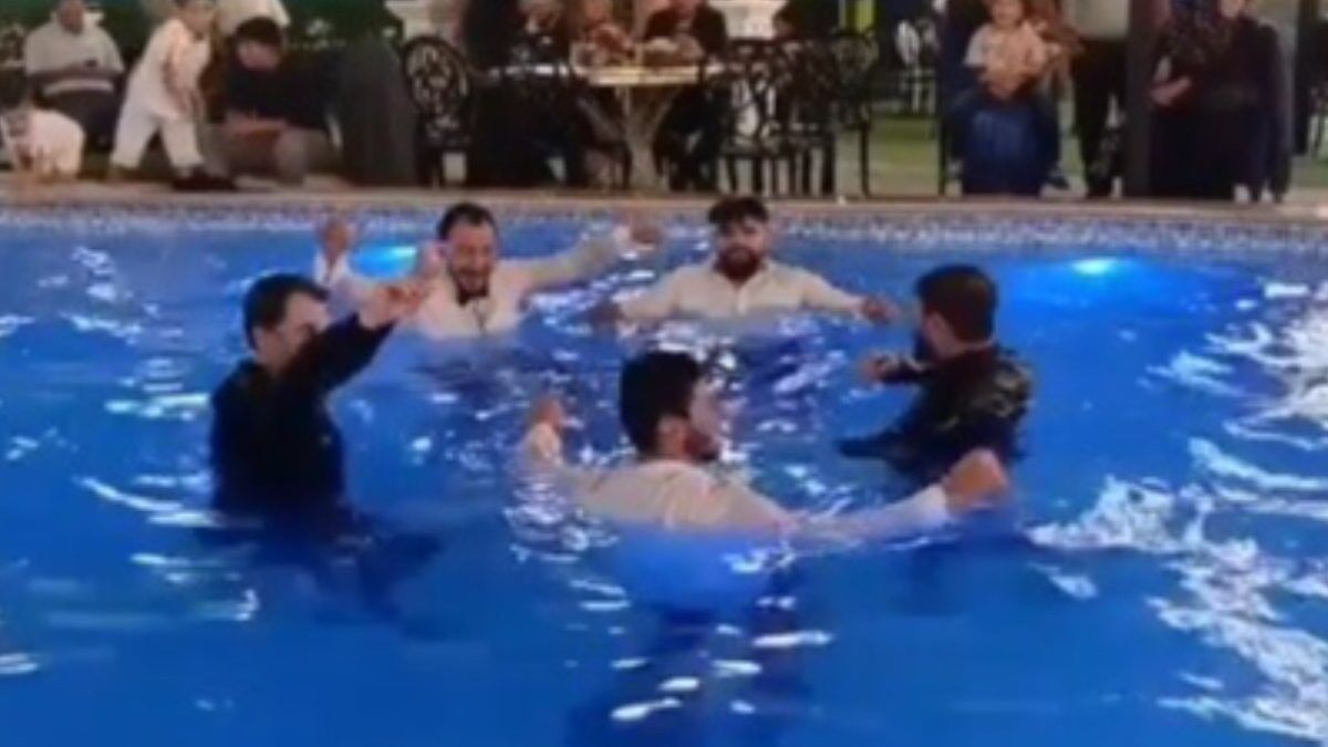 Havuzun içinde çiftetelli oynadılar