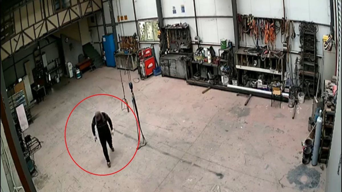 Telaşa kapılarak kaçmaya çalışan adamın yaşadığı korku ve panik güvenlik kamerası tarafından saniye saniye kaydedildi.