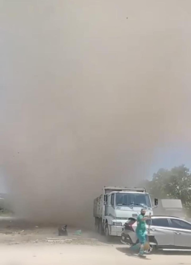 Görüntülerde hortumun etkisiyle çevredeki bazı hafif cisimlerin savrulduğu, insanların panik içinde güvenli alanlara doğru yöneldiği anlar yer aldı.