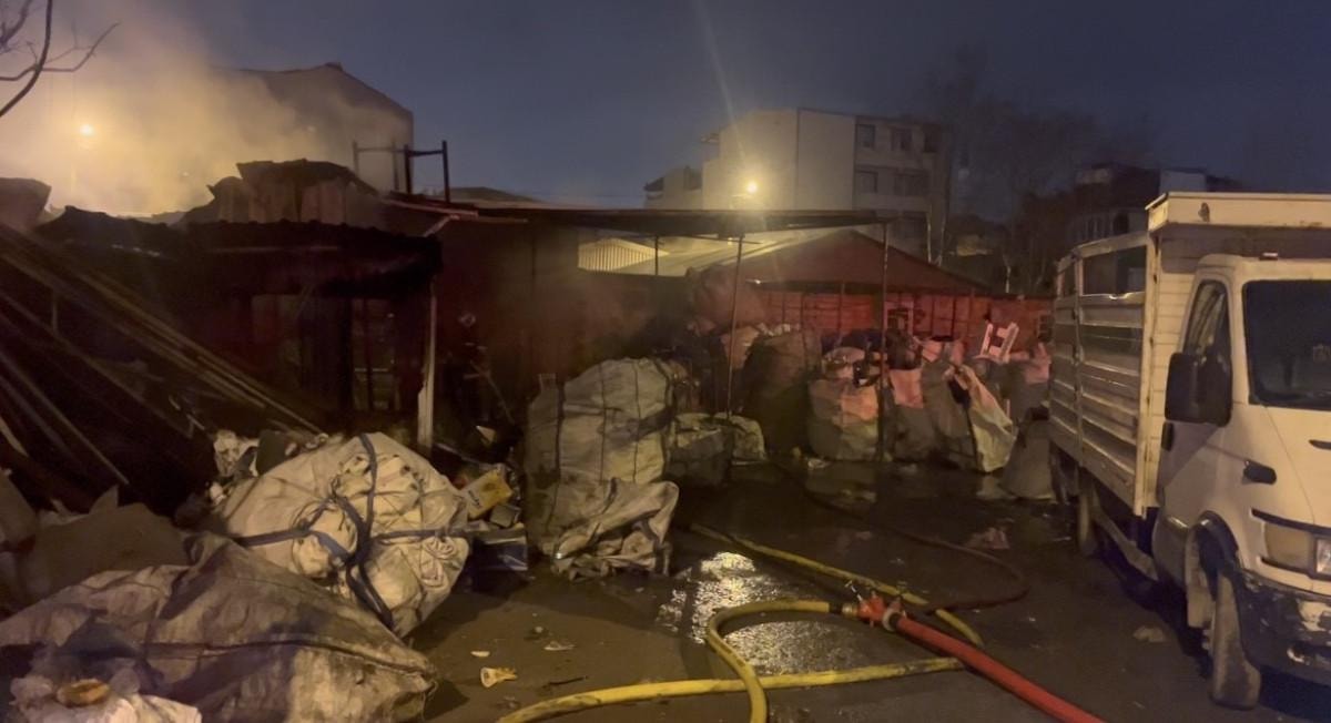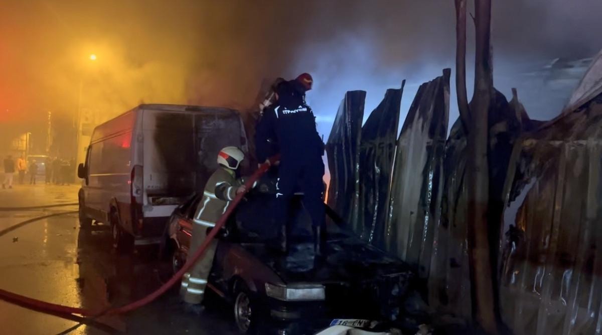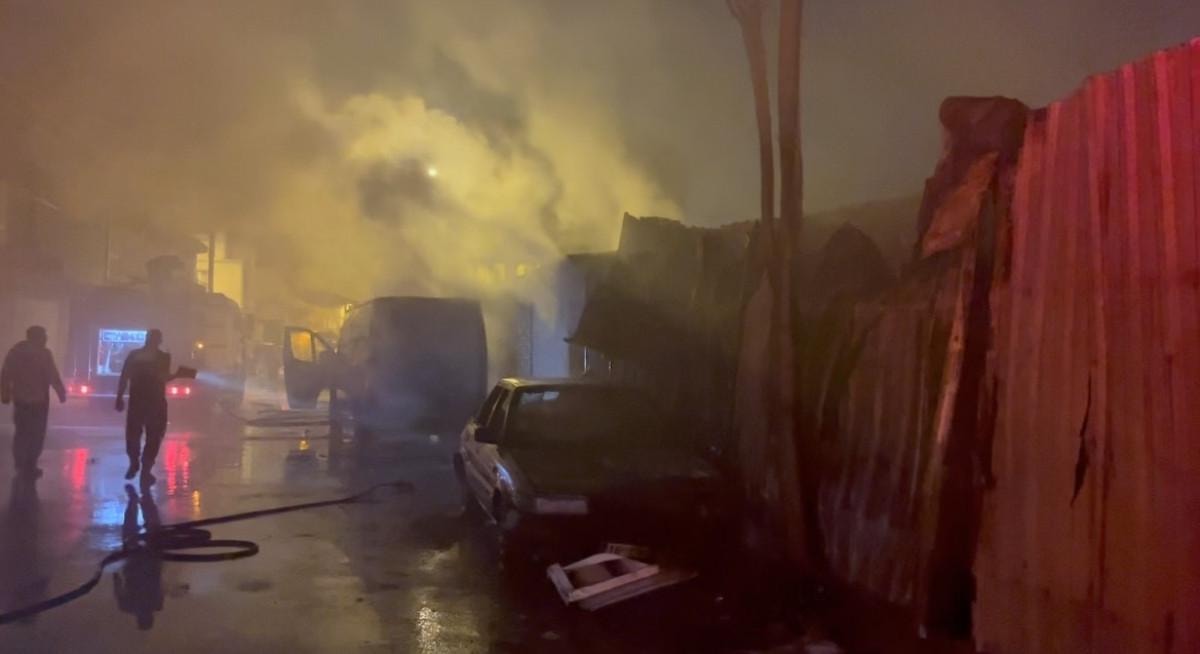 Kısa sürede büyüyen alevler hurda deposunun bitişiğine park edilen iki aracı da sardı.