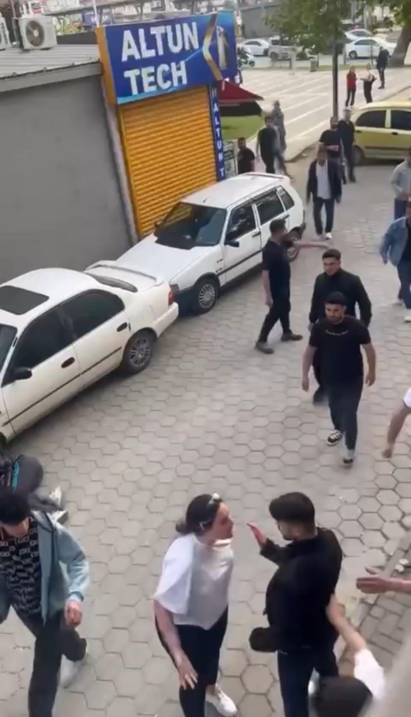 Saldırı sırasında yoldan geçen bir kadın, kavganın şiddetini görünce, zorla araya girerek dövülen kişiyi korumaya çalıştı.