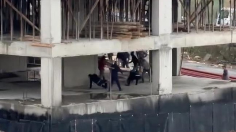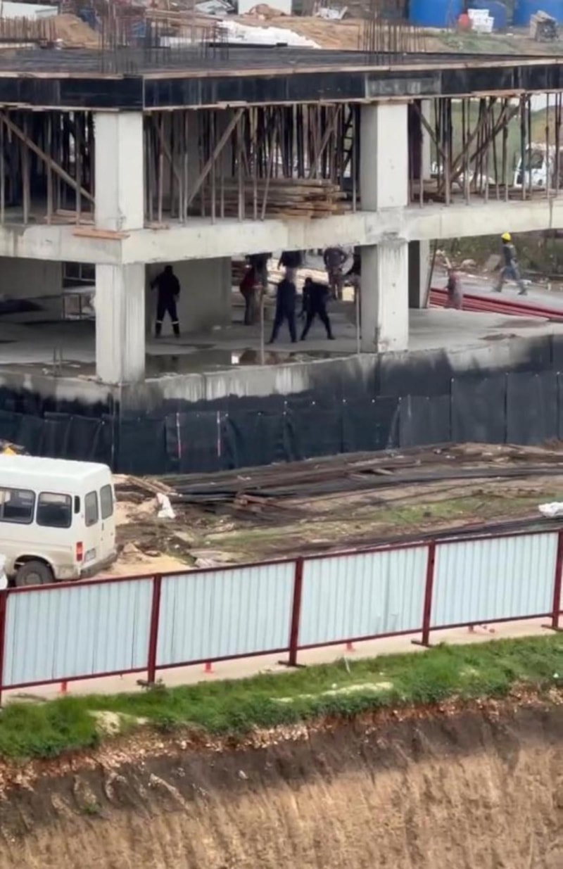 İnşaat işçileri arasında çıkan tartışma kısa süre içerisinde sopalı kavgaya dönerken o anlar, saniye saniye kaydedildi.