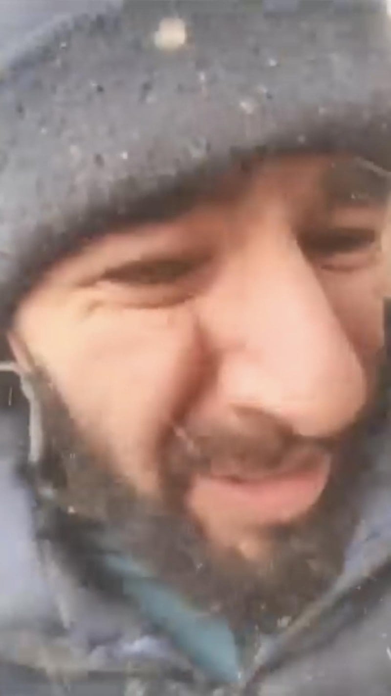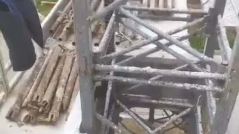 O anları saniye saniye kaydeden işçi, iskelenin çökmesiyle kendini yerde buldu.