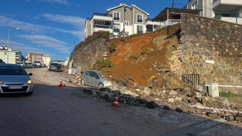 Bursa’nın Mudanya ilçesi Halitpaşa Mahallesi’nde, gece saat 01.00 sıralarında etkili olan yağmur, Yumurta Tepe Caddesi’ndeki Şan Sitesi’ne ait istinat duvarının çökmesine yol açtı. Metrelerce yüksekliğe sahip duvarın yıkılması, park halindeki bir aracın duvarın altında kalmasına neden oldu.