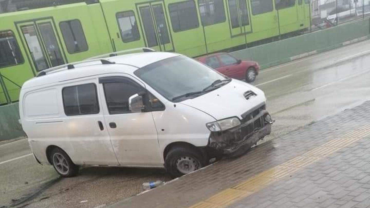 Bursa’nın Kestel ilçesinde servis taşımacılığı izni olmayan bir minibüs, yağan yağmurun da etkisi ile kaza yaptı.