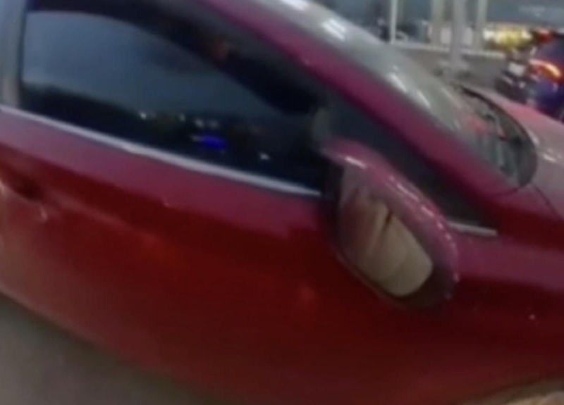Yaşanan gerilim üzerine kadın motosiklet sürücüsü otomobilin yanına giderek aracın sağ aynasına sert bir şekilde vurdu.