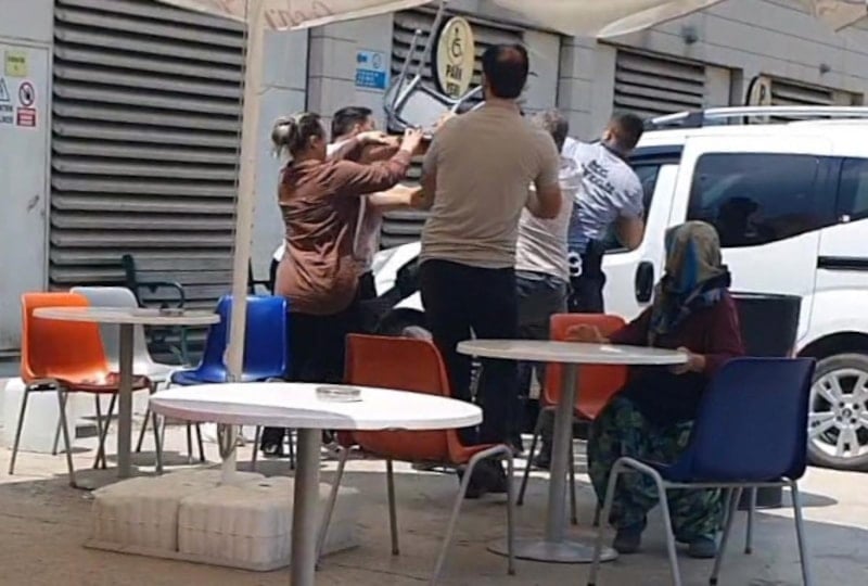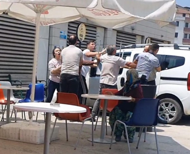 Aileler arasındaki sandalye, masa ve yumruklu kavga, amatör kameraya saniye saniye yansıdı.