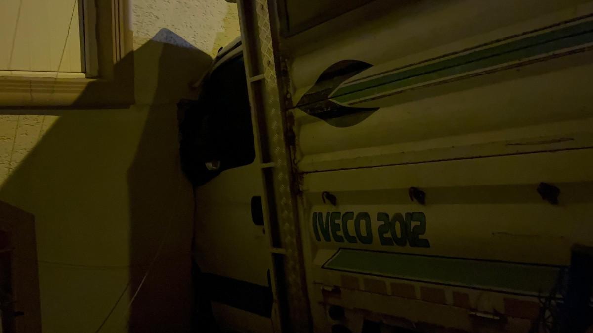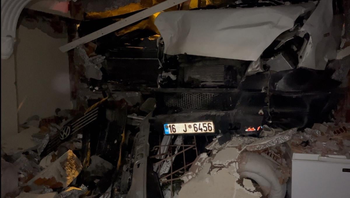 Kamyonet, önünde sürüklediği minibüsle 4 katlı apartmanın giriş katındaki dairenin salonuna girdi.