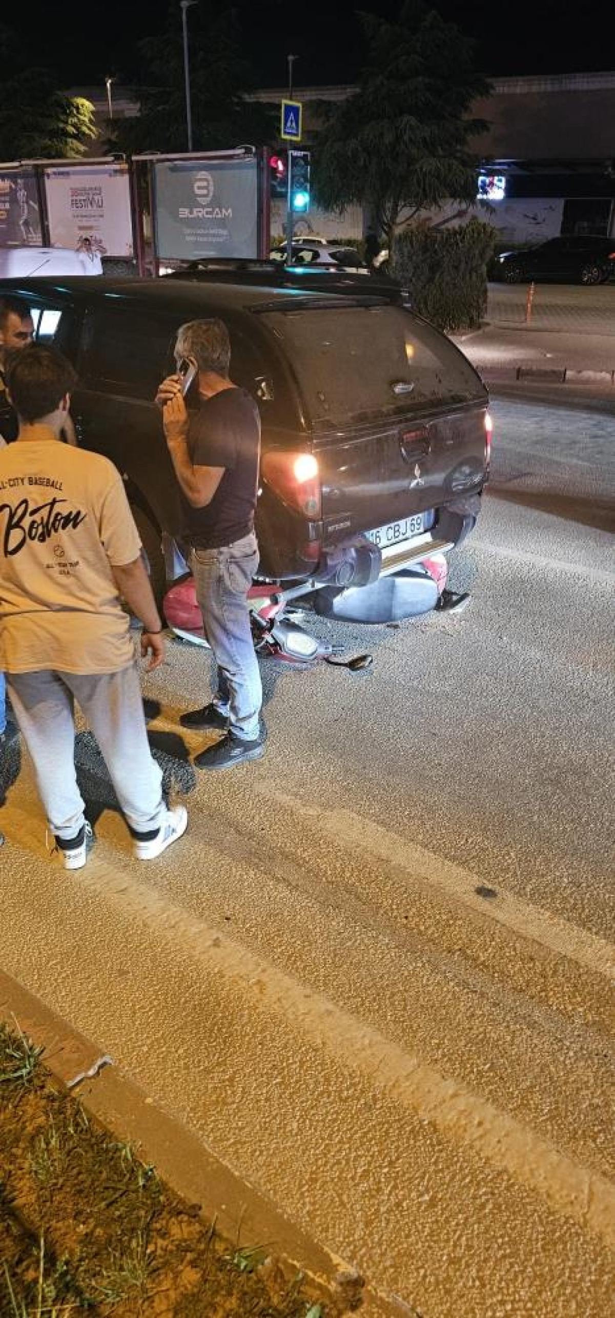 Devrilen motosiklet, sürüklenerek kırmızı ışıkta bekleyen sürücü Hüseyin Y.(48) yönetimindeki kamyonetin altına girdi.