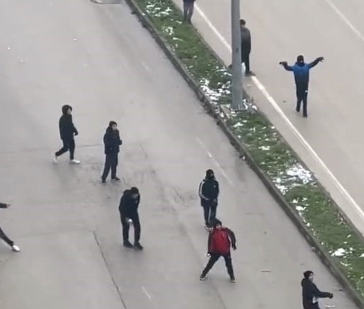 Bursa'nın İnegöl ilçesinde yaşları küçük yaklaşık 10 çocuk, caddeden geçen özel halk otobüslerinin camlarına kar topu attı.