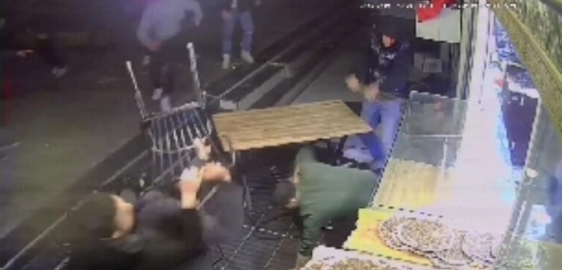 Bursa'da bir grup genç ile esnaf arasında çıkan kavgada sandalyeler masalar havada uçuşurken, traflardan bazıları dakaosu fırsat bilip tezgah önündeki ürünleri çaldı.