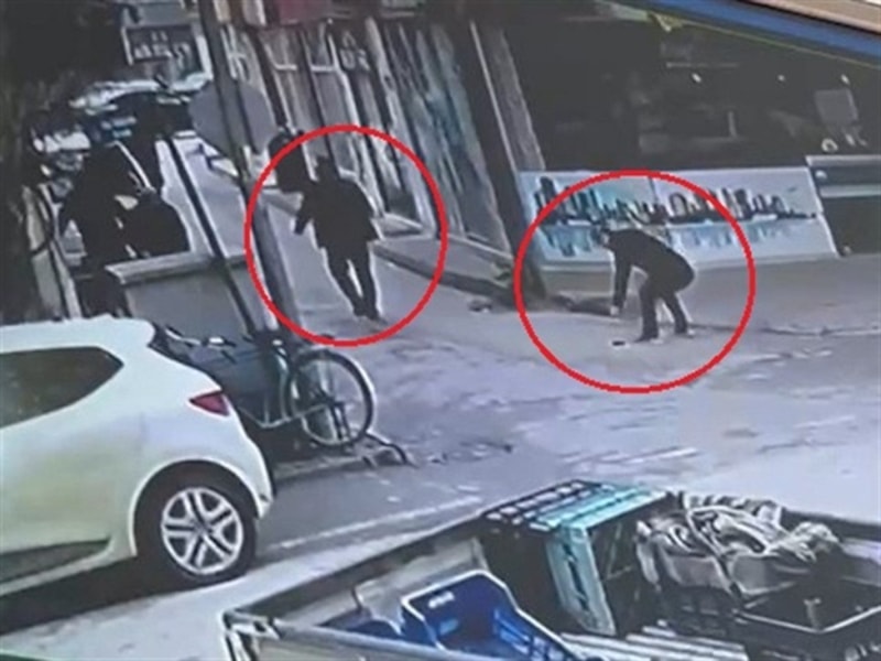 Halil Can Kalkancı’nın ittiği Adem Ünver’in tabancasını çekip arka arkaya ateş ettiği, sol bacağından vurulan Kalkancı’nın ara sokağa kaçtığı görüntülere yansıdı.