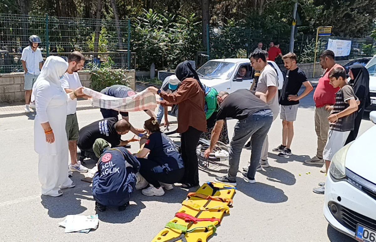 Çarpmanın etkisiyle devrilen bisikletten düşen sürücü yaralandı.
