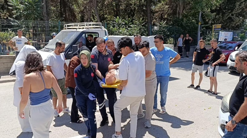 Vatandaşlar, evlerinden getirdikleri örtüyle yaralıyı güneşten korudular.