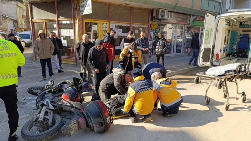 İnegöl ilçesinde buzlanma sebebiyle devrilen motosikletten düşen sürücü ve arkasındaki arkadaşı yaralandı.Sürücü, kendi acısını unutup, yaralı arkadaşına destek oldu.