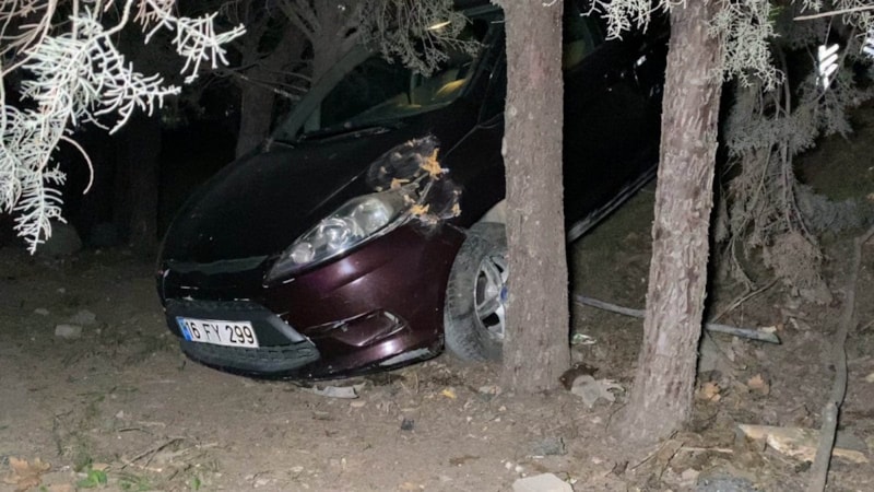 Çarpmanın etkisiyle panikle sürücünün kontrolünden çıkan otomobil, yolun kenarındaki alışveriş merkezinin bahçesine uçtu.