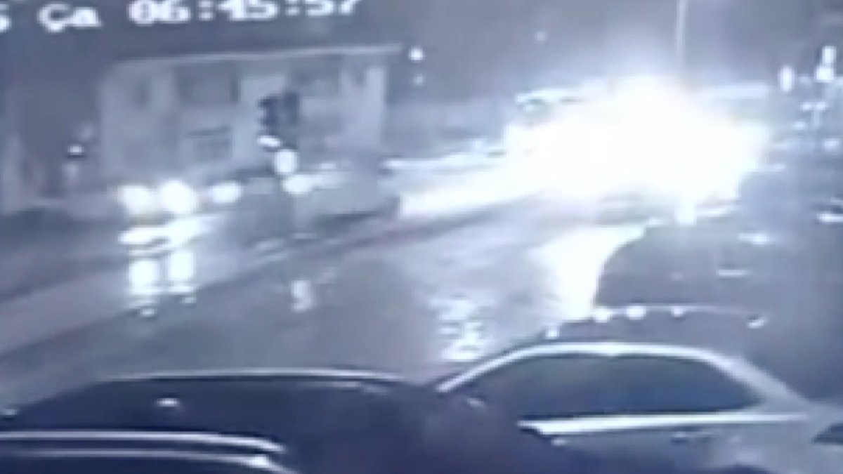 Öte yandan kaza anı, bir iş yerinin güvenlik kamerası tarafından saniye saniye kaydedildi.